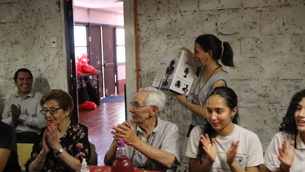 Cueca, vals, rock and roll, chuchua son algunos de los bailes que disfrutamos en la visita a los adultos mayores de la parroquia del Espíritu Santo. La tarde del viernes 12 de diciembre, será inolvidable para los alumnos, profesores y apoderados que participaron en la entrega de los regalos de navidad a los abuelitos de Macul.