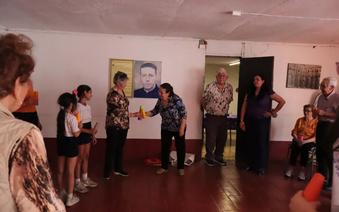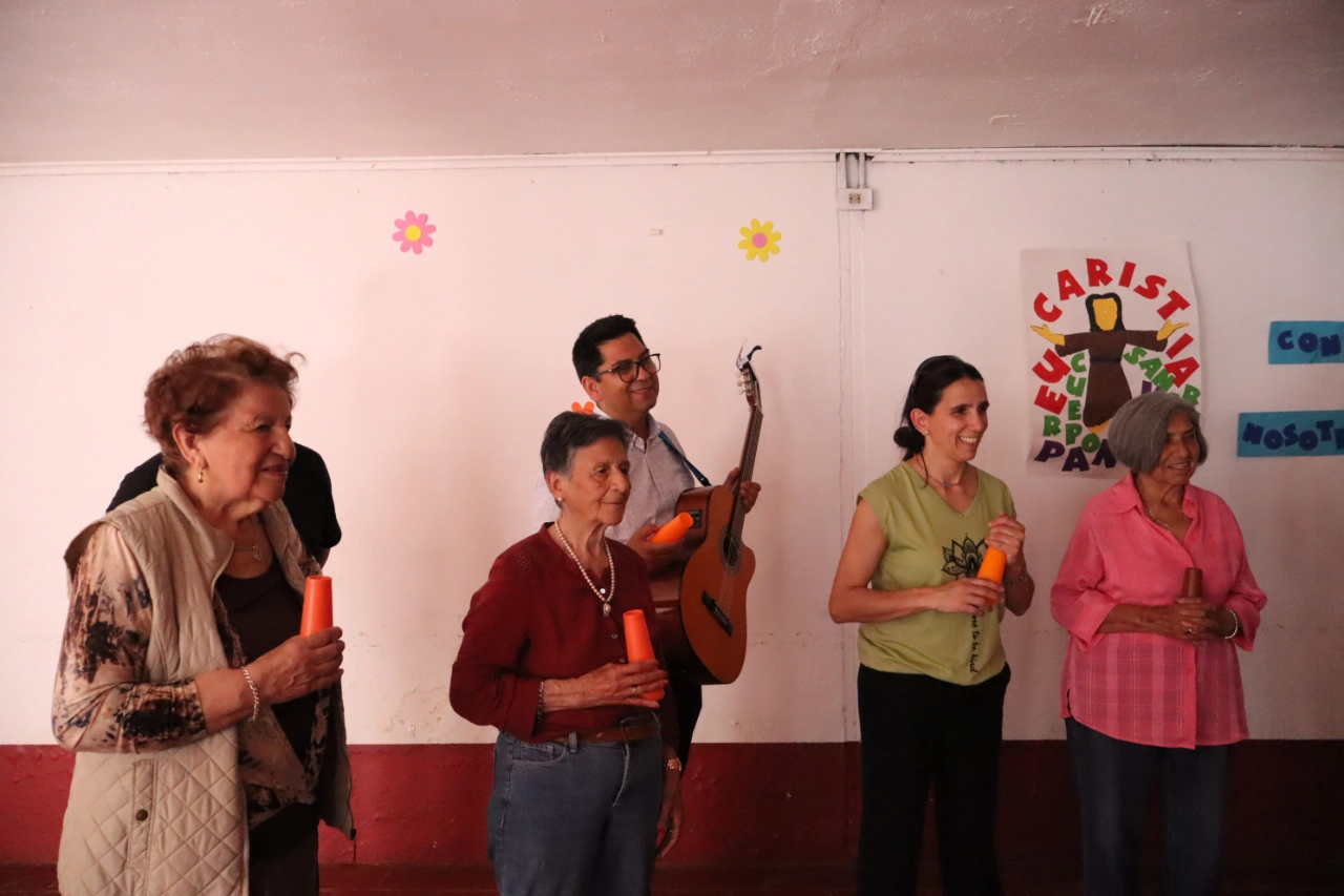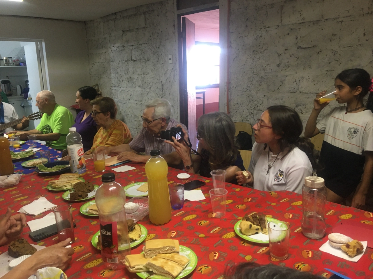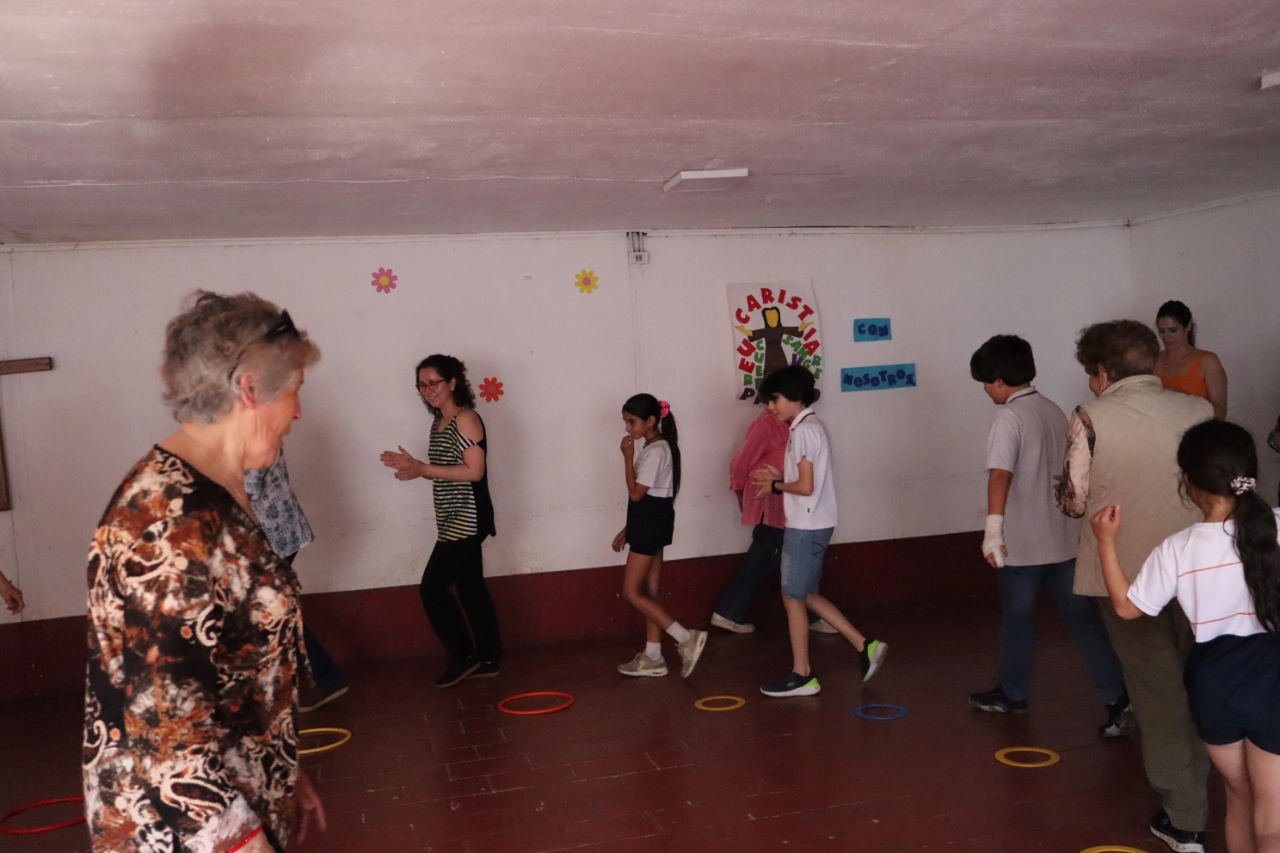 El viernes pasado, un grupo de delegadas de acción social, junto a sus hijos y dos profesores del colegio, visitaron a los adultos mayores de la capilla del Espíritu santo de Macul. Fue un encuentro de muchas generaciones, en el cual niños, jóvenes, adultos y adultos mayores disfrutaron jugando, riendo y compartiendo experiencias de vida.